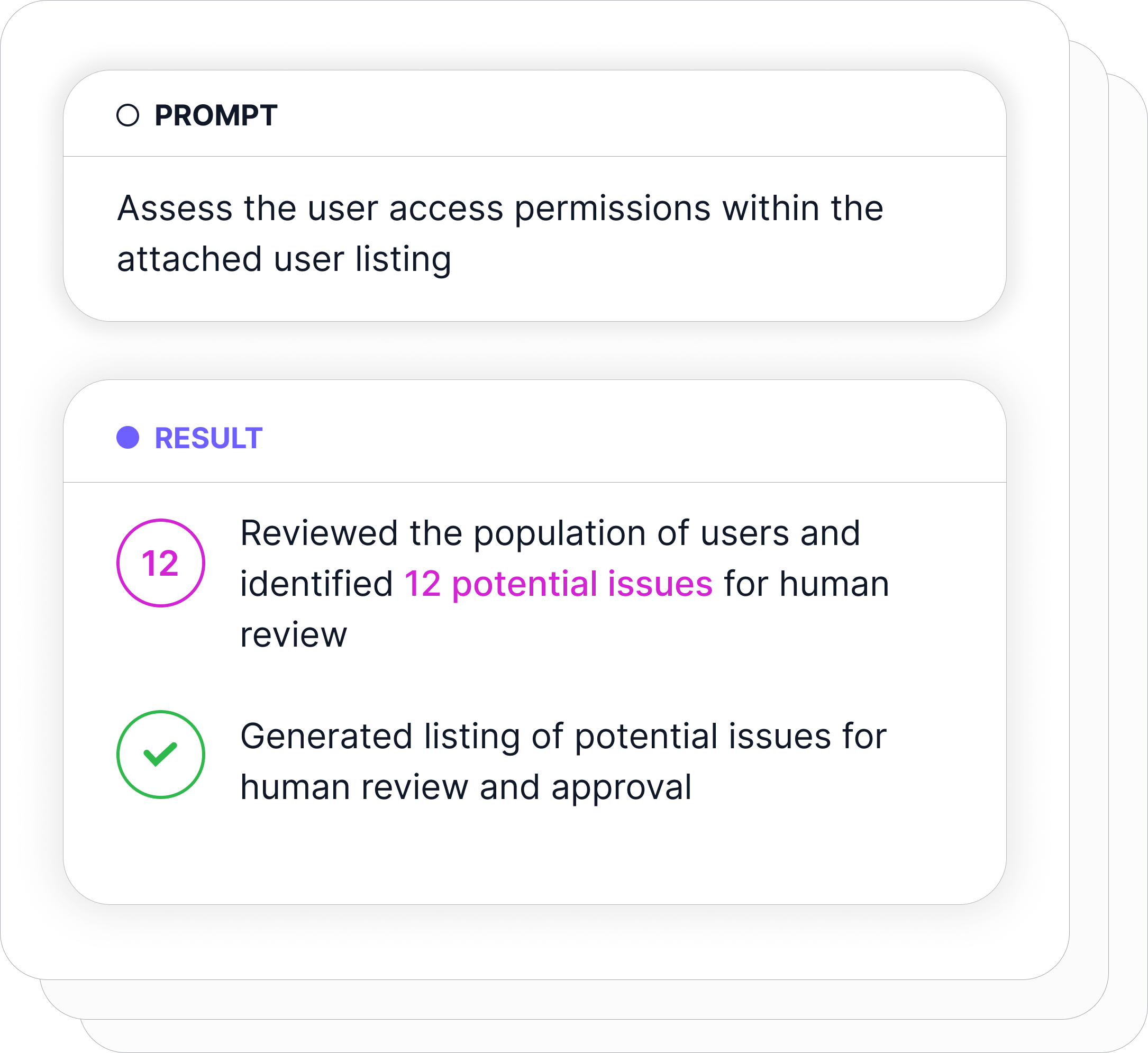 Every AI action is logged with the reasoning and evidence behind it—fully reproducible for compliance documentation.